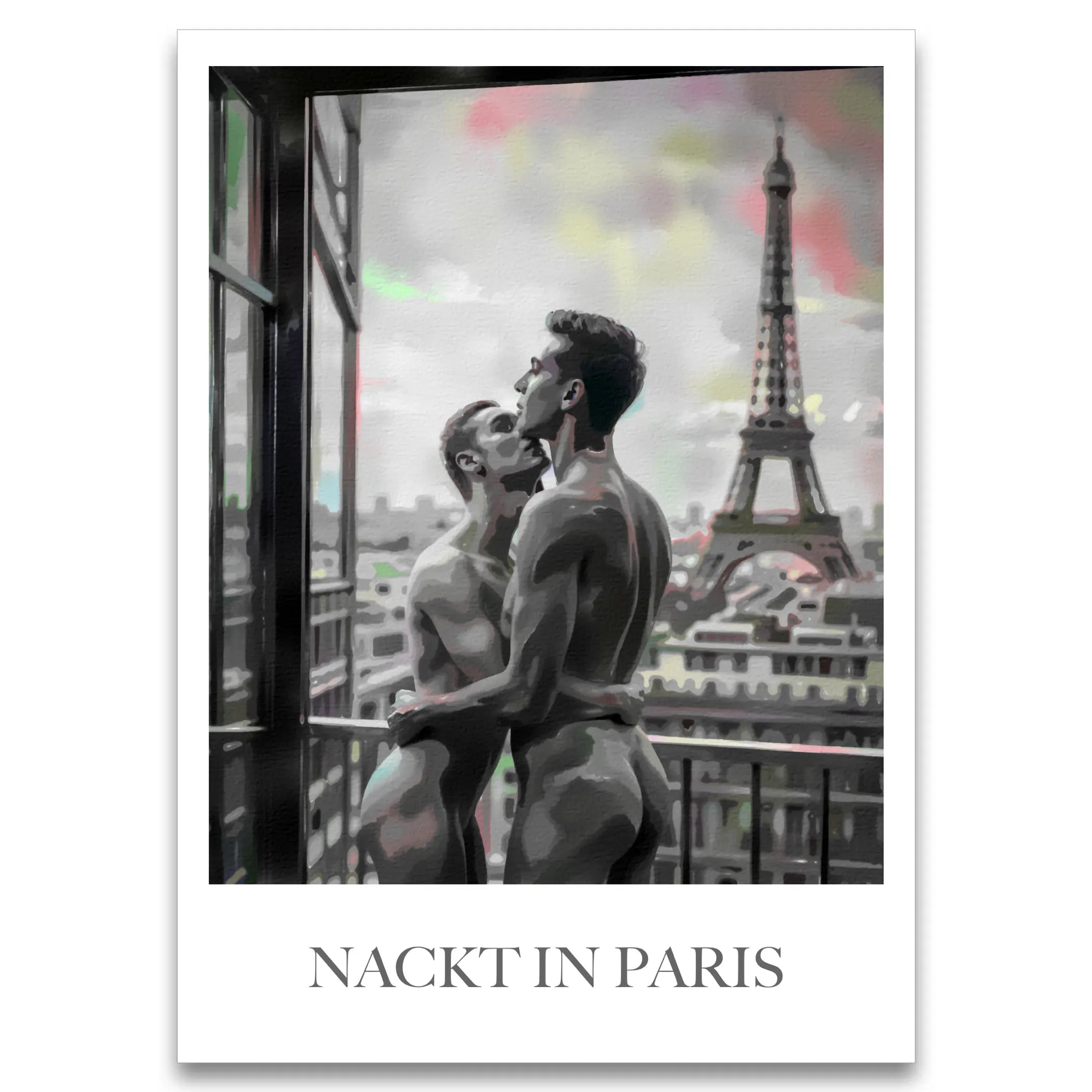 Nøgen i Paris Plakat - Gay Love Kunstfotografi Eiffeltårnet | Kunstværk Billeder
