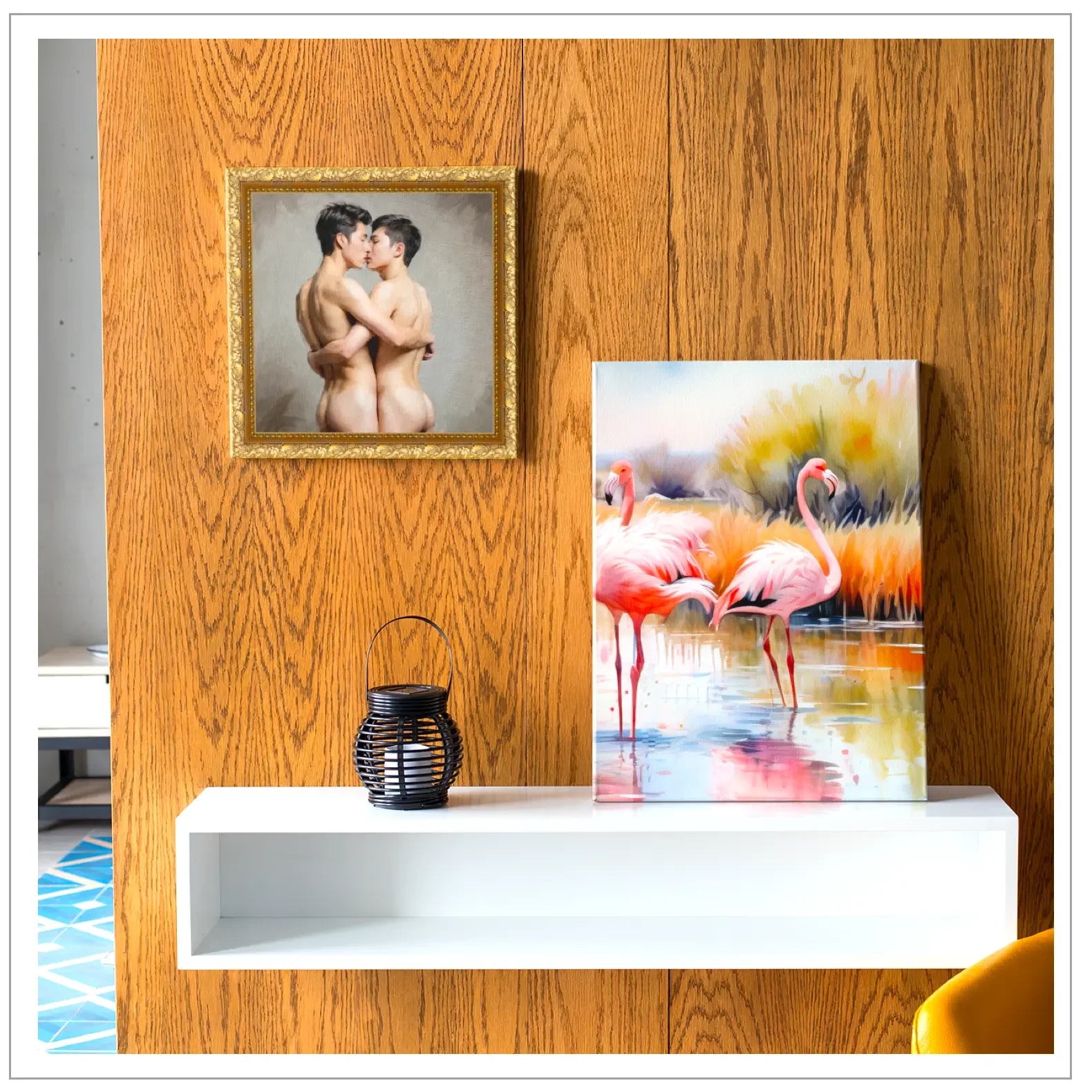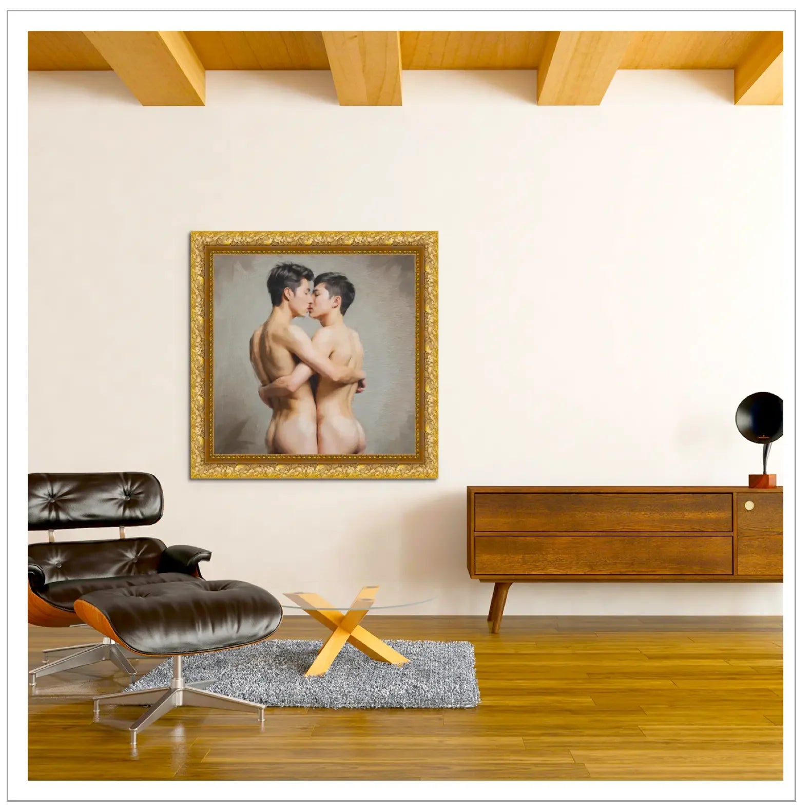 Til alle, der fejrer homoseksuel kærlighed og ønsker at indrette deres hjem med romantisk, tidløs kunst. Et intimt statement-stykke, der udstråler varme og følelser.