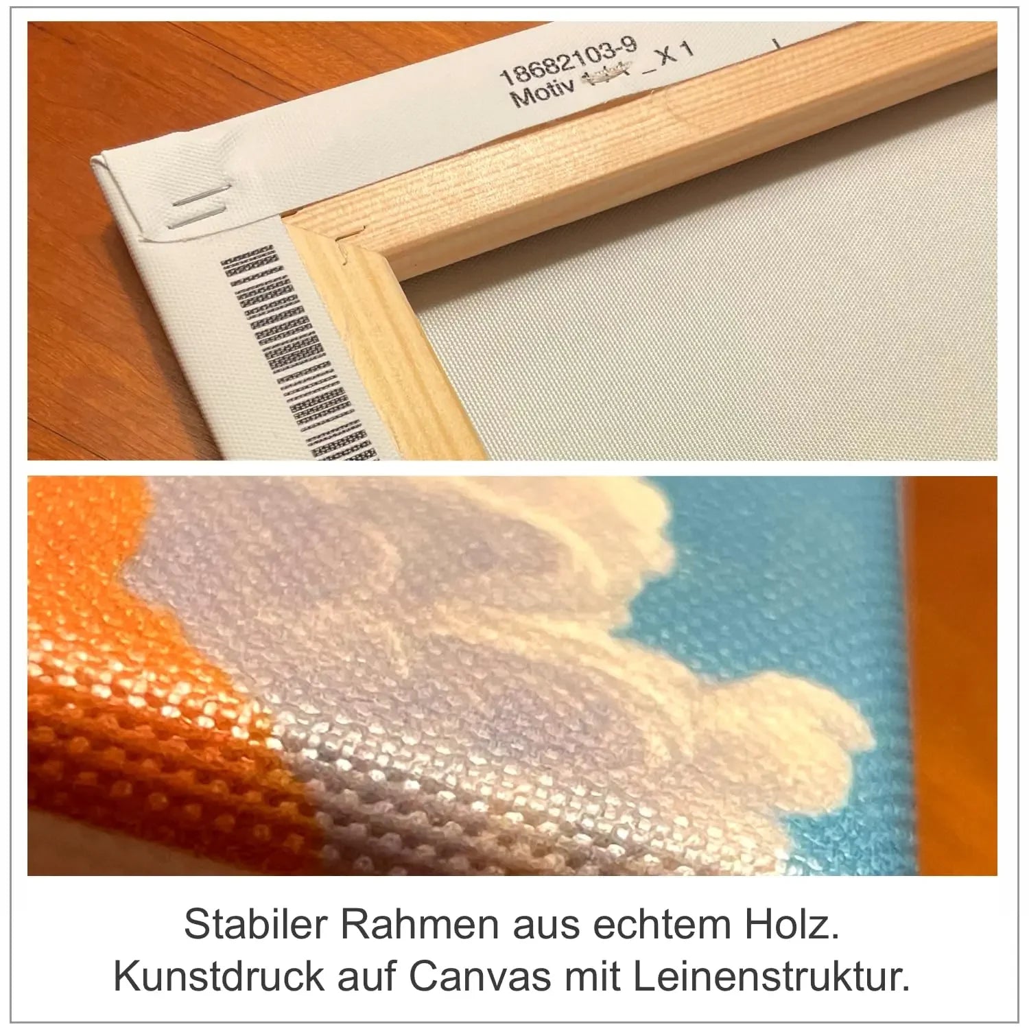 Canvas: Hochwertiger Druck auf Leinwand, gespannt auf stabilem Keilrahmen (2 cm tief). Sofort aufhängbar. Verfügbare Größen: 20x20 cm, 30x30 cm, 50x50 cm, 60x60 cm.